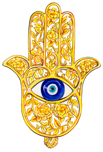 Schutz vor Gefahren von Aussen Unheil aller Art Hamsa Breitbandamulett gegen böse Geister und böse Blicke. Hamsa, auch Hand der Fatima oder Hand der Miriam. Das handförmige Amulett wird im nahen Osten und in Nordafrika zur Abwehr böser Geister eingesetzt. Seine weiträumige geografische Verbreitung sowie die grosse über Religionsgrenzen hinweg reichende Beliebtheit lassen eine hohe Wirksamkeit vermuten. https://de.wikipedia.org/wiki/Hand_der_Fatima Info: |